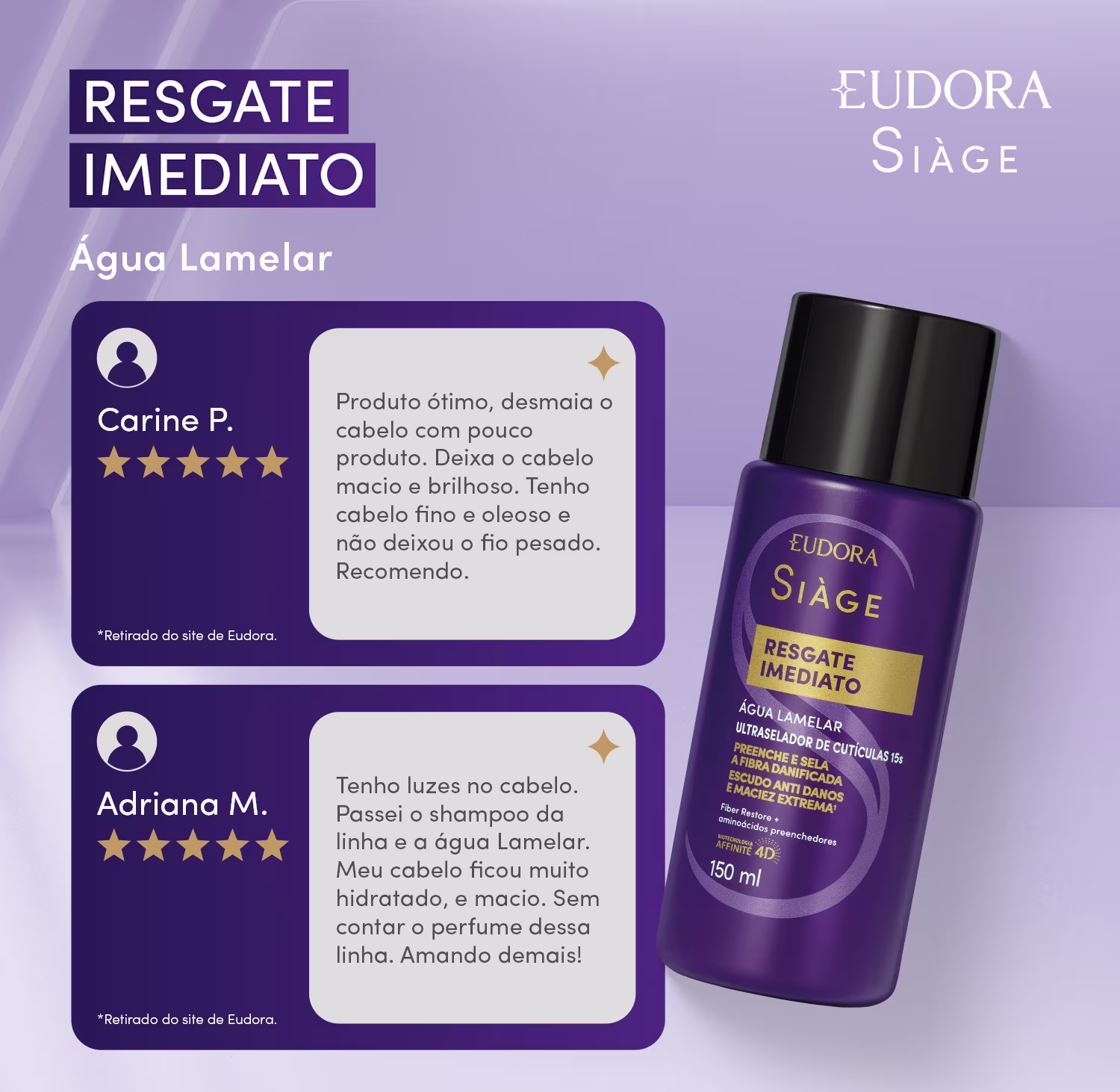 A Água Lamelar Resgate Imediato atua na eliminação das irregularidades do fio causadoras de porosidade. Ver mais ❯
