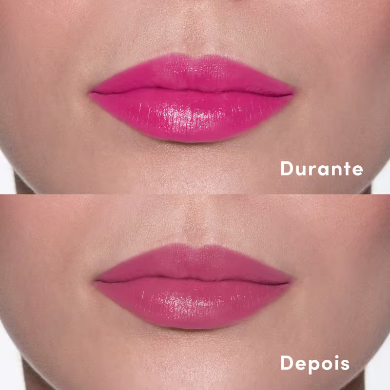 E o melhor, é um batom 3 em 1: quando aplicado apenas uma camada, seu acabamento é de balm labial; Na segunda camada, ele se transforma em efeito batom, mais pigmentado; Quando aplicado nas bochechas, ele se torna um blush. Ideal para completar a sua produção com um toque de charme!