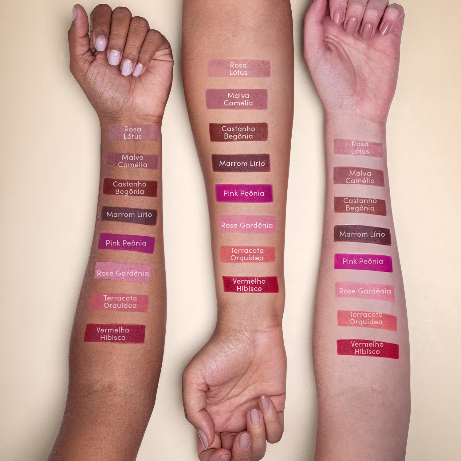 A cor Terracota Orquídea, tom desenvolvido por e para todos os tons da pele brasileira, entrega o queridinho efeito skinny matte: sua fórmula de alta pigmentação é perfeitamente equilibrada com a textura ultrafina e o efeito mate aveludado, garantindo um conforto incomparável aos lábios, semelhante à uma pétala.