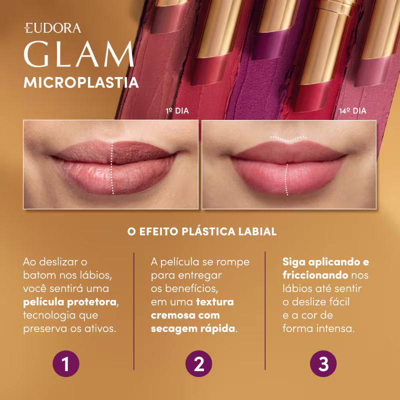 Eudora Glam apresenta, com exclusividade, o primeiro batom com Efeito Plástica Labial do Brasil!