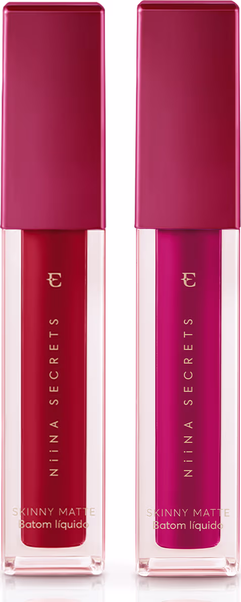 O Batom Líquido Niina Secrets Skinny Matte é o segredo para uma make que cuida dos seus lábios enquanto te deixa ainda mais linda. De textura leve e cor impactante, sua embalagem vem com uma tampa marsala sofisticada e um aplicador confortável. Mais um sucesso cocriado por Niina Secrets e Eudora e desenvolvido por e para todos os tons da pele brasileira.