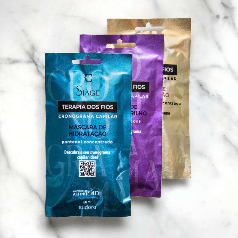 O Combo Cronograma Capilar Siàge Terapia dos Fios Máscara Capilar: Reconstrução + Hidratação + Nutrição contém todas as incríveis máscaras do cronograma capilar Terapia dos Fios Eudora. Você vai contar com uma máscara de reconstrução que é capaz de recuperar aqueles fios mais danificados, protegendo-os contra danos que possam vir a acontecer.