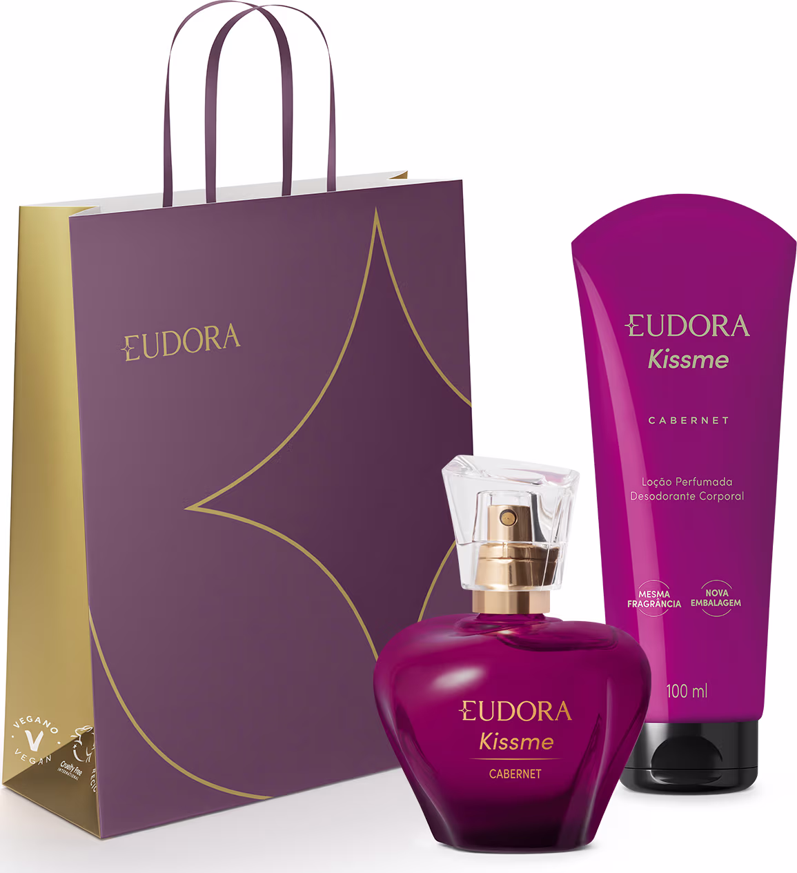 Combo Eudora Kiss me Cabernet presente: Desodorante Colônia 50ml + Loção Perfumada 100ml + Sacola