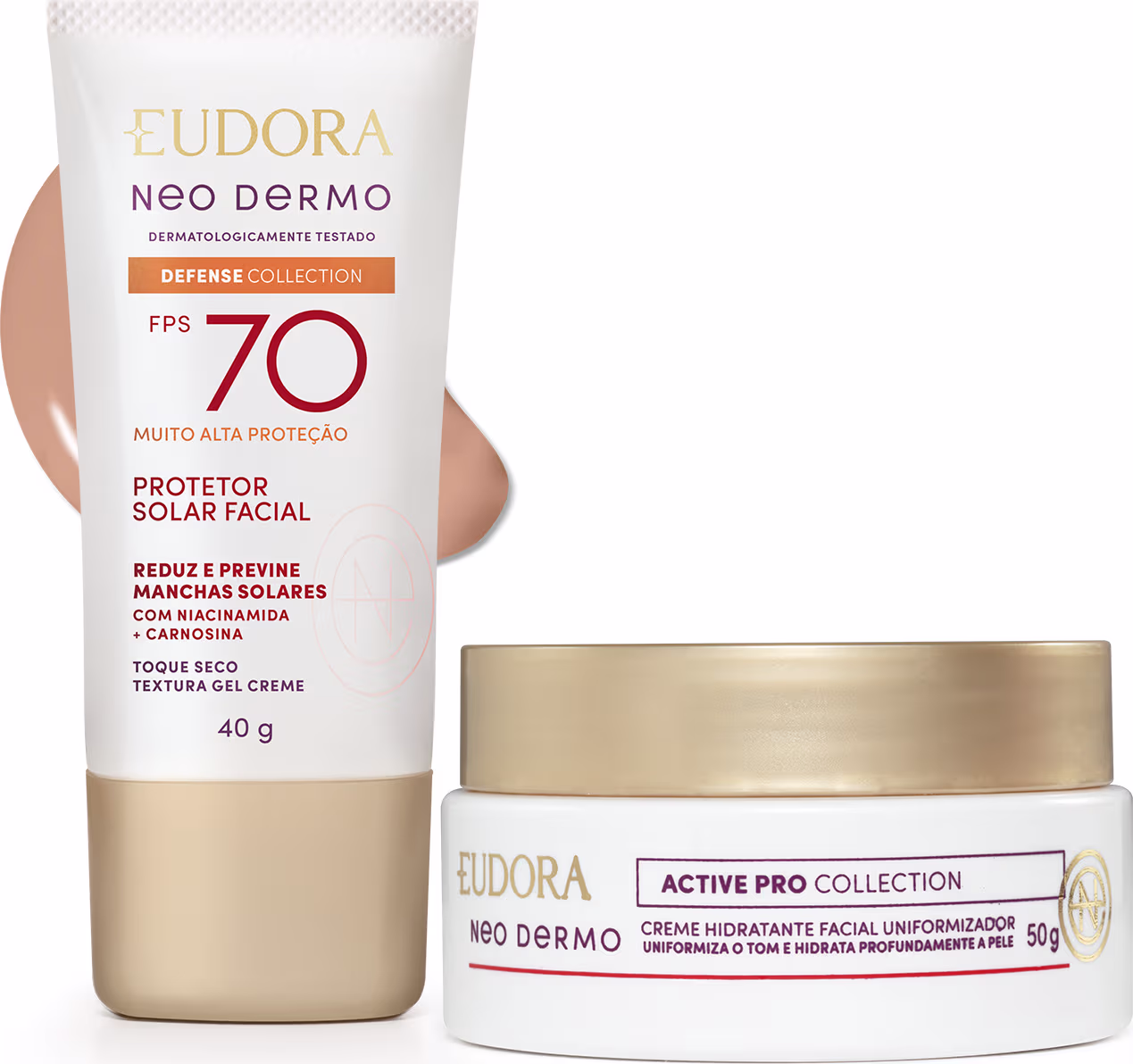 Dupla Neo Dermo: alta proteção FPS 70 com cor e uniformização intensiva para uma pele radiante e toque seco. Ver mais ❯