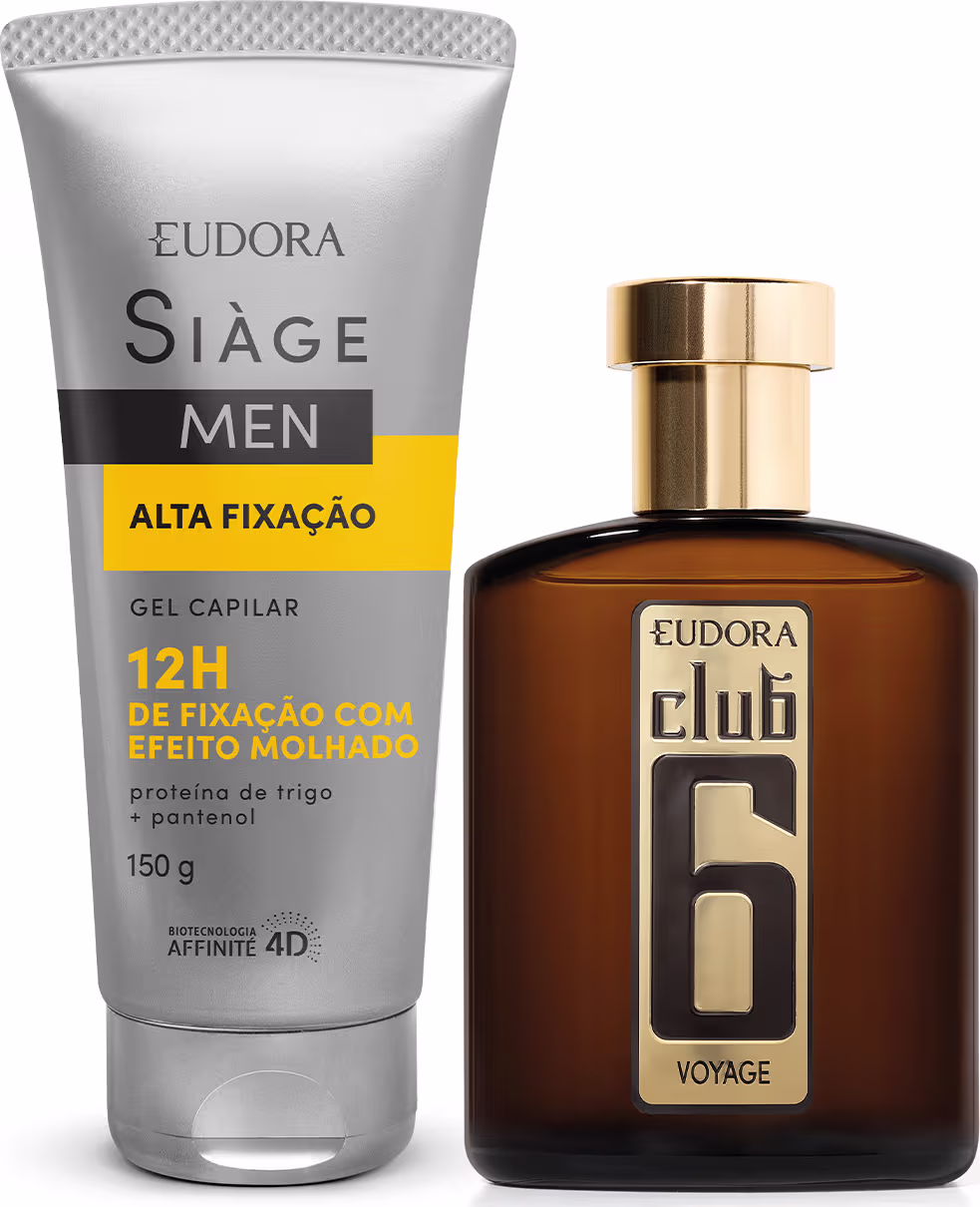 Este combo reúne o poder da fragrância Club 6 Voyage e a praticidade do Gel Capilar Efeito Molhado Siàge Men. Aproveite a união entre uma fragrância marcante e um penteado impecável.