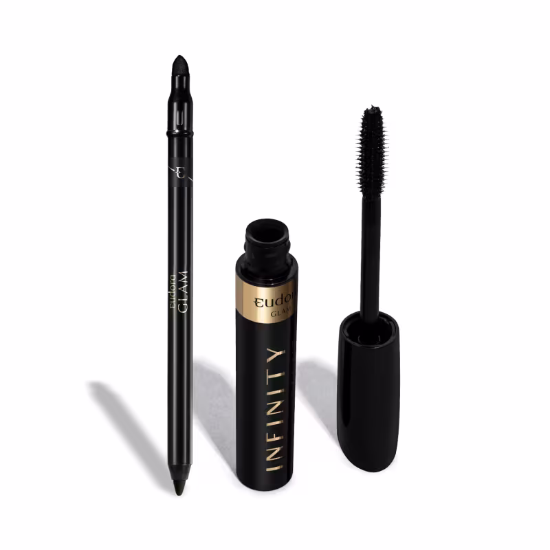 Combo Glam Cílios: Máscara Infinity Volume 8,5g + Lápis Kajal Preto com Esfumador 1,1g
