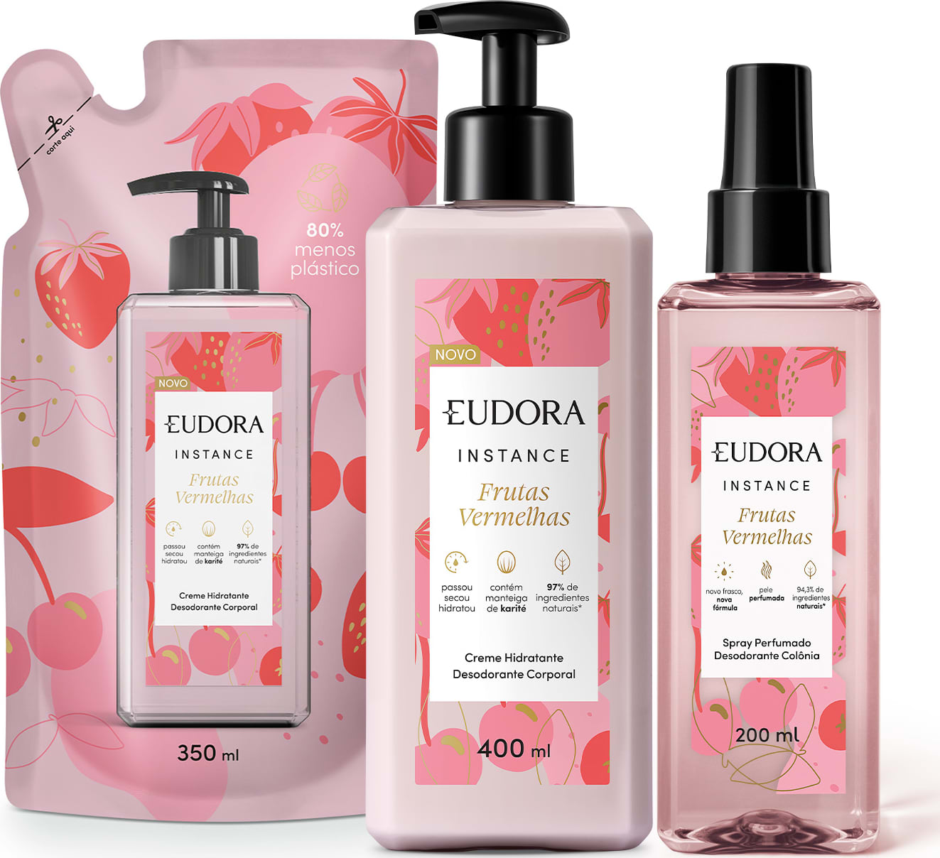 Combo Instance Frutas Vermelhas: Loção Corporal 400ml + Spray Corporal 200ml + Refil Loção Corporal 350ml