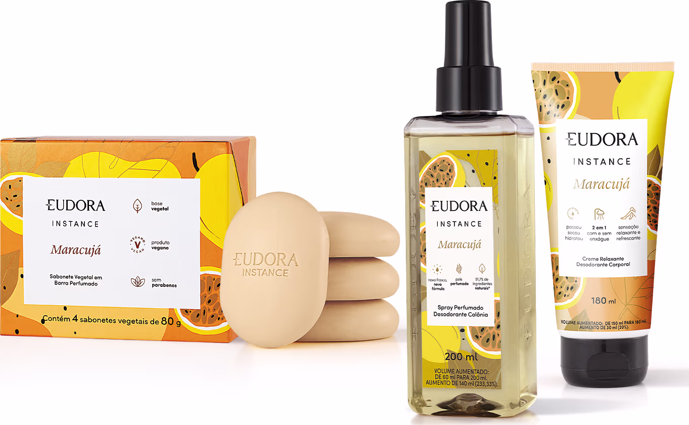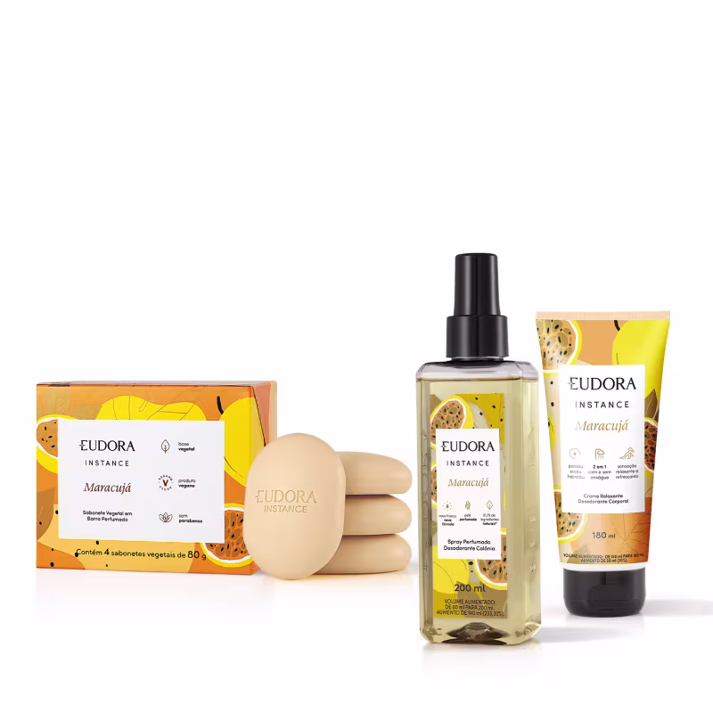 Combo Instance Maracujá: Spray Colônia 200ml + Creme Corporal 180ml + Sabonete em Barra 4x80g