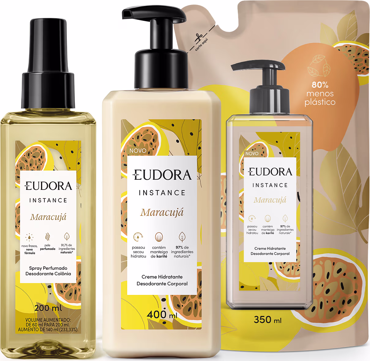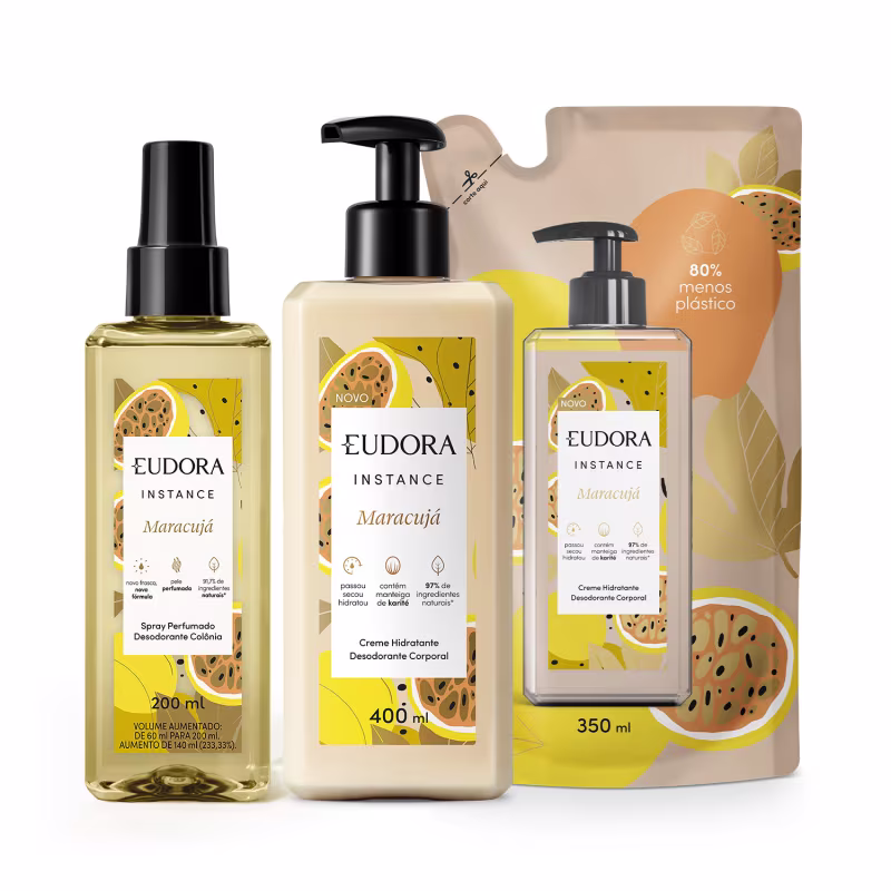 Combo Instance Maracujá: Spray Corporal 200ml + Loção Hidratante Desodorante 400ml + Refil Loção Hidratante 350ml