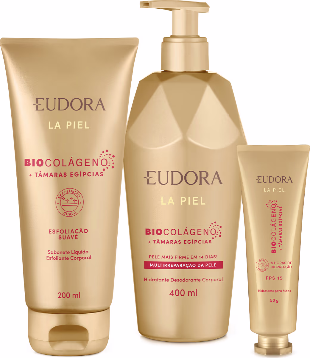 O Combo La Piel Tâmaras Egípcias traz diferentes itens para higienizar e cuidar da sua pele com uma fragrância Oriental Gourmand. Com sabonete líquido e hidratação para o corpo e mãos, este combo vai ser o melhor aliado do seu autocuidado diário: