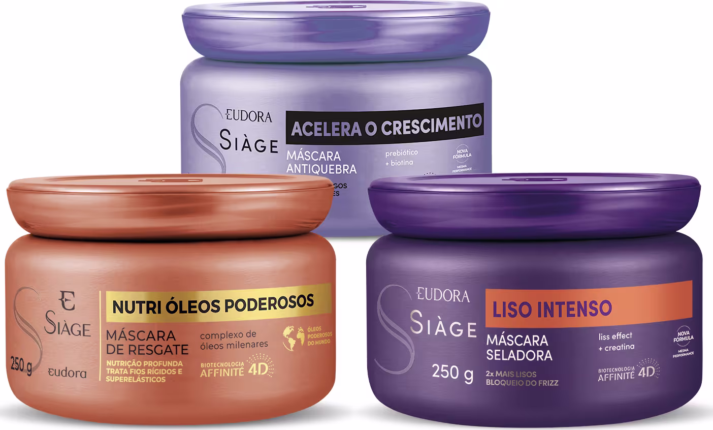 Combo Máscara Capilar Siàge: Acelera o Crescimento 250g + Liso Intenso 250g + Óleos Poderosos 250g
