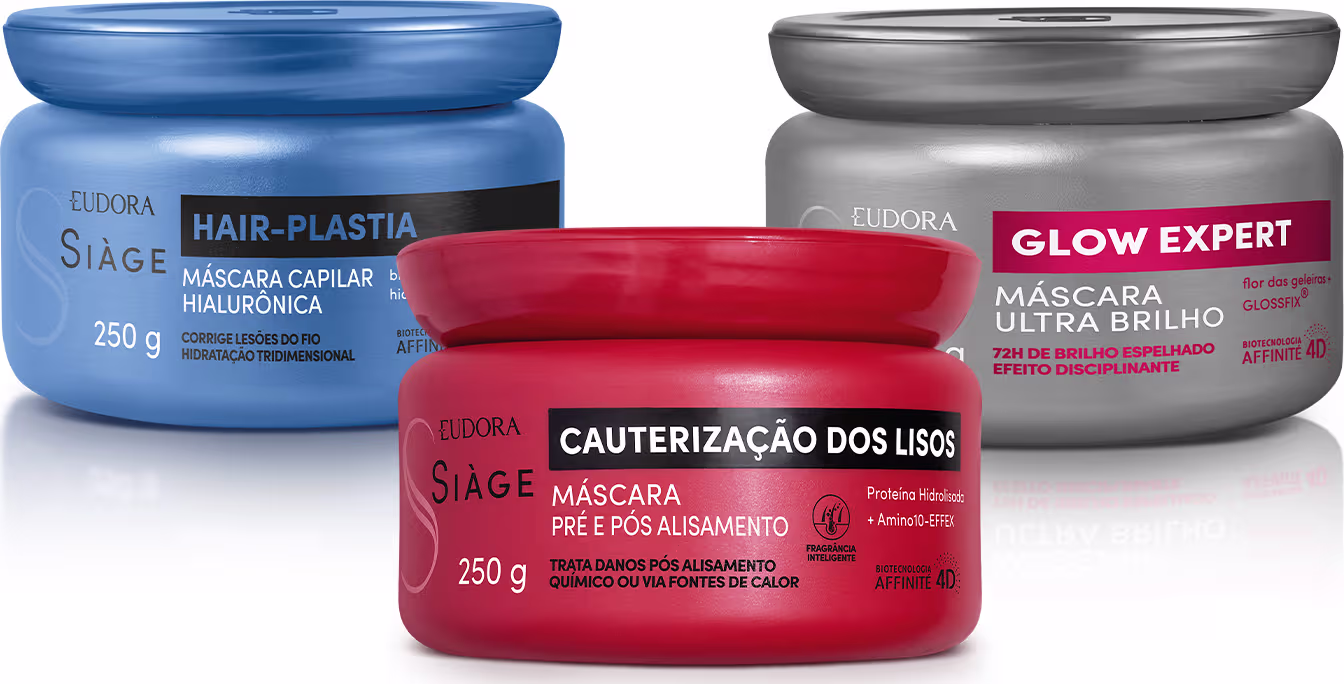O Combo Máscara Capilar Siàge traz tudo que você precisa para deixar os seus fios macios, brilhantes e fortes. Ele promove um tratamento completo nos seus cabelos, proporcionando toda a saúde e a beleza que você sempre buscou para as suas madeixas. Experimente e apaixone-se por Eudora Siàge!
