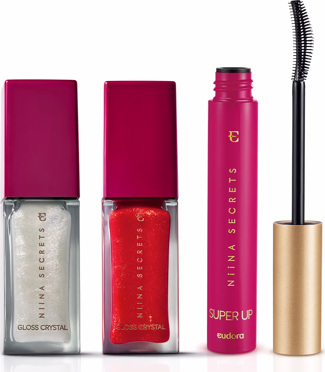 Combo Niina Secrets: Gloss Vermelho Jaspe 7ml + Gloss Holográfico Moon 7ml + Máscara para Cílios 8g