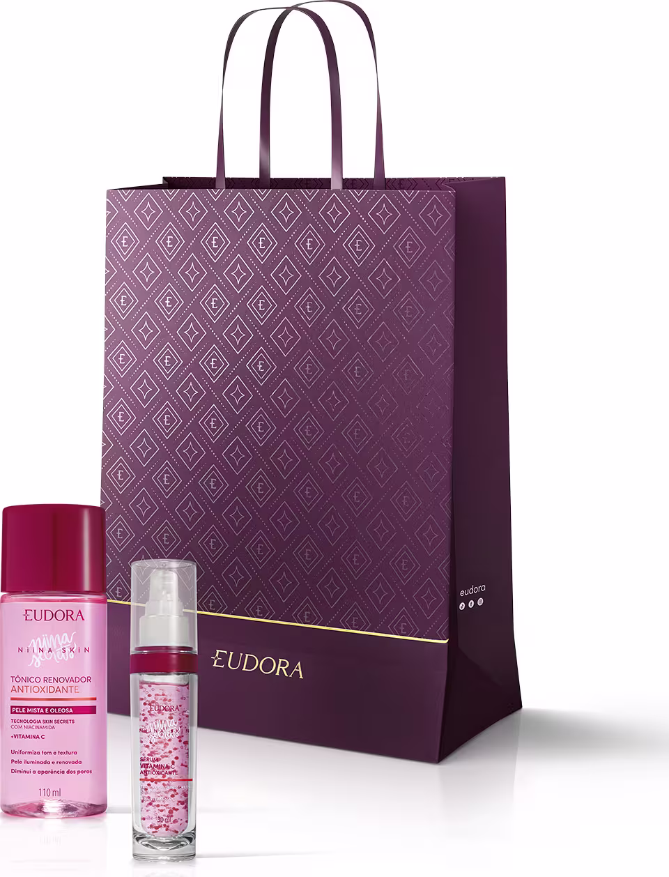 Este combo oferece uma rotina essencial de cuidados com a pele para renovação e luminosidade. O Sérum e o Tônico atuam juntos, utilizando a Vitamina C e a Tecnologia Skin Secrets para uniformizar o tom e minimizar a aparência dos poros. Ideal para uso diário e para prevenir sinais de envelhecimento. Acompanha a Sacola para presente.