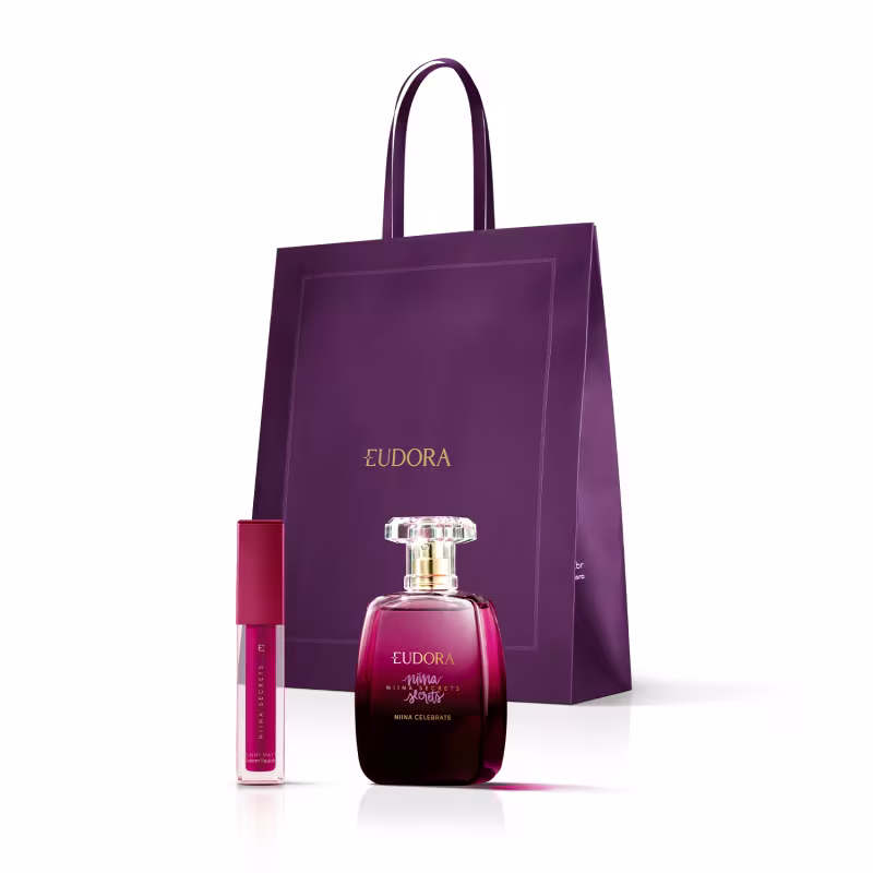 Este Combo Presente Niina Secrets traz o Batom Líquido Pink Peônia e o Celebrate Desodorante Colônia, além de uma Sacola Presenteável Roxa. O objetivo é exaltar mulheres confiantes com uma fragrância floral amadeirada sofisticada e lábios tratados com cor impactante.