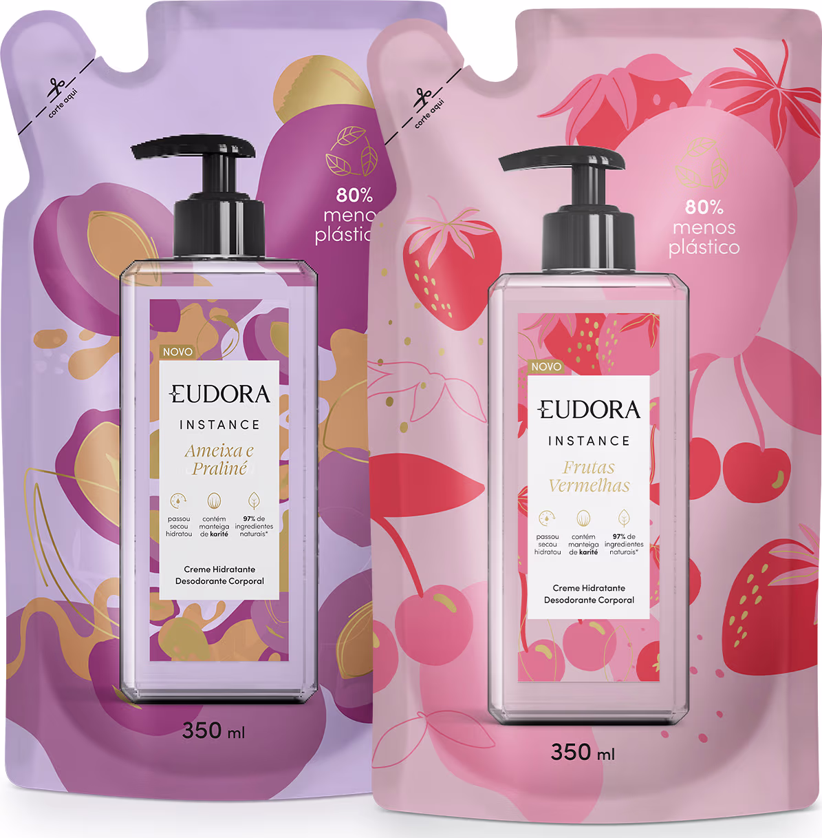 Combo Refil Instance: Creme Hidratante Desodorante Corporal Ameixa e Praliné 350ml + Loção Hidratante Desodorante Corporal Frutas Vermelhas 350ml
