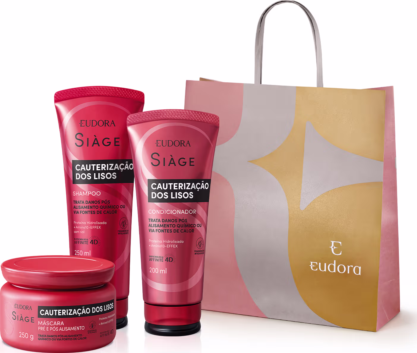 O Combo Siàge Cauterização dos Lisos traz itens para uma rotina de cuidados capilares completa junto a uma sacola presenteável, para montar o seu presente e surpreender aquela pessoa especial ou presentear a si mesmo: