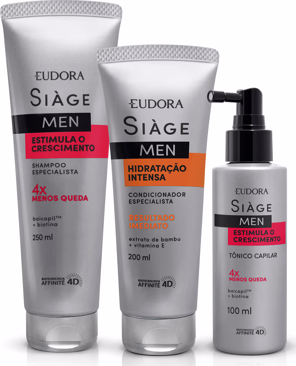 Combo Siàge Men: Shampoo Estimula o Crescimento 250ml + Condicionador Hidratação Intensa 200ml + Tônico Capilar Estimula o Crescimento 100ml