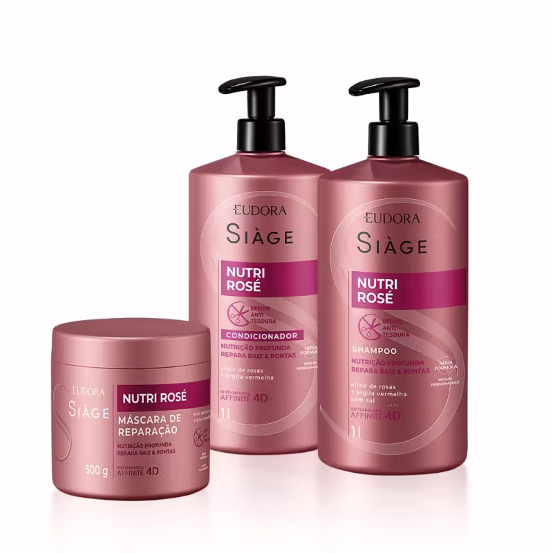 O Combo Siàge Nutri Rosé garante o tratamento ideal para fios saudáveis, hidratados e livres de pontas duplas.