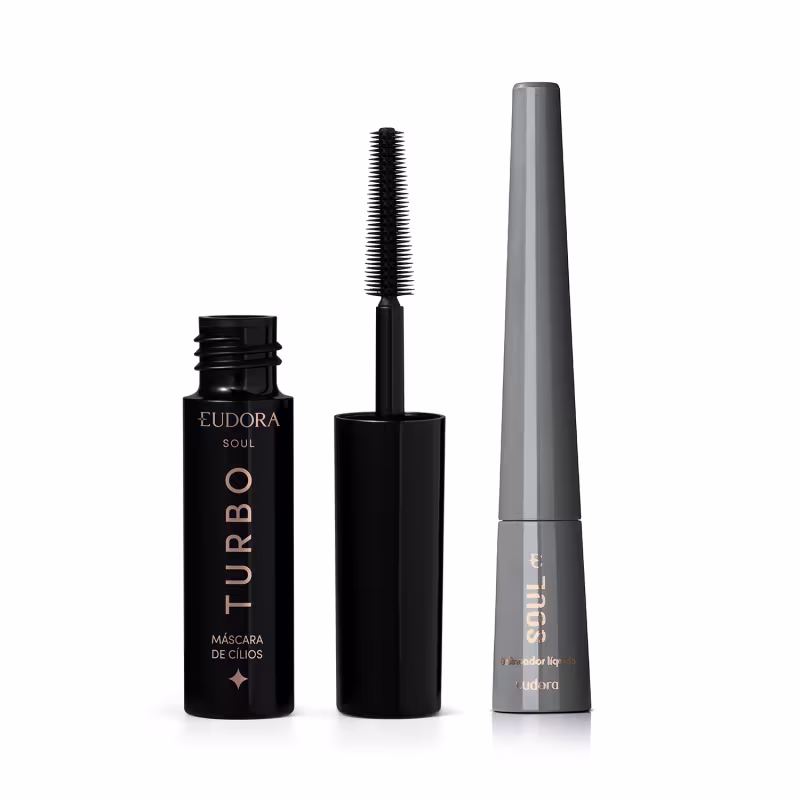 Este combo Soul é a dupla perfeita para um olhar que hipnotiza, combinando a precisão do Delineador Líquido Para Olhos Soul Preto Essencial com o impacto da Máscara de Cílios Turbo Soul 5g. Prepare-se para um olhar poderoso, com traços definidos e cílios volumosos que duram o dia todo, realçando sua atitude e beleza única.