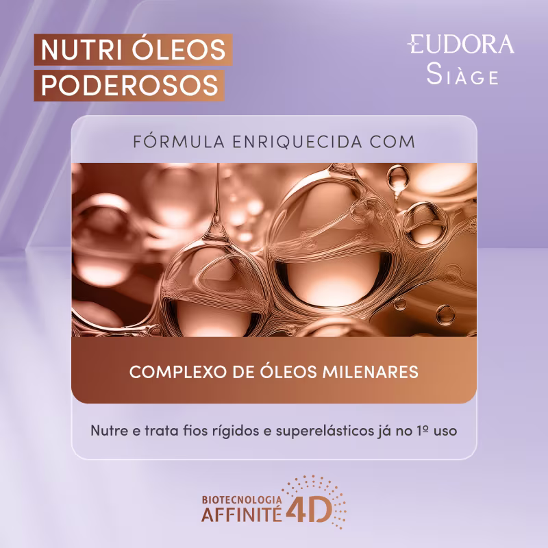 O Condicionador Siàge Nutri Óleos Poderosos garante hidratação intensa diária até o interior da fibra do fio. Ver mais ❯