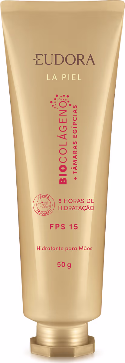 O Creme Hidratante para Mãos FPS 15 La Piel Tâmaras Egípcias foi desenvolvido com a tecnologia do Biocolágeno que, associado com o Pantenol e Niacinamida, traz mais firmeza para a sua pele, além de hidratar mãos, unhas e cutículas por até 8 horas.