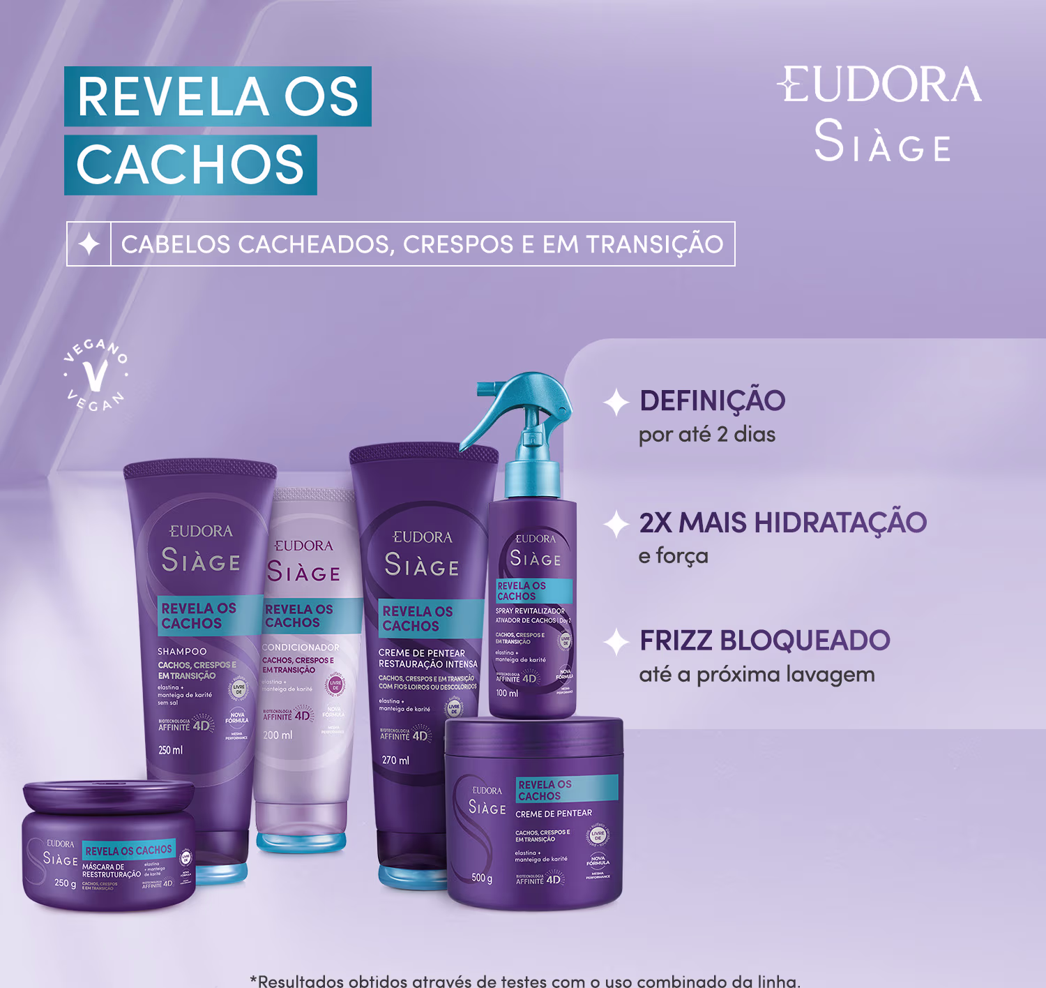 O resultado são Cachos impecáveis, ultra hidratados e definidos até a última volta.