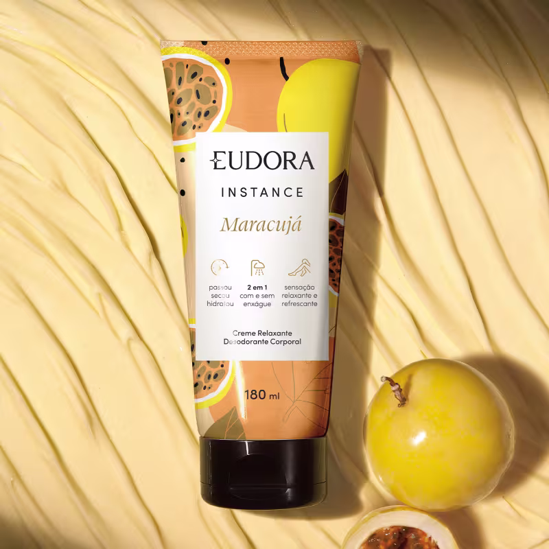 O creme relaxante Instance Maracujá deixa a sua pele hidratada e perfumada para um dia a dia mais cheiroso.