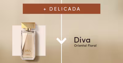 Uma das fragrâncias femininas de maior sucesso em Eudora, Diva carrega em seu portfólio produtos essenciais para transformar a rotina da mulher que sonha e realiza. Com fragrâncias femininas exclusivas, loções hidratantes perfumadas, itens de maquiagem, produtos para corpo e banho, acessórios e kits para presentear, Diva é uma marca que proporciona experiências diárias completas. Conheça um pouco mais sobre a essência dos tipos de fragrâncias de Diva: