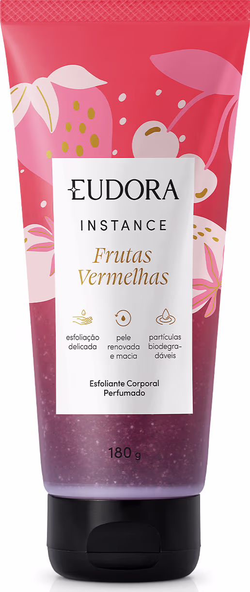 O Esfoliante Corporal Perfumado Instance Frutas Vermelha traz um esfoliação suave para completar sua rotina de banho.