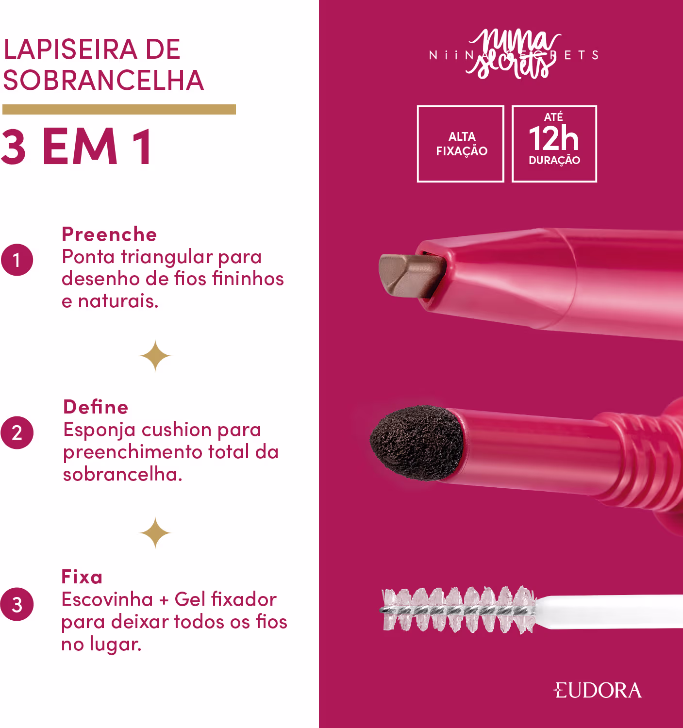 Com tudo que suas sobrancelhas precisam em um só produto, a Lapiseira de Sobrancelha 3 em 1 Média de Niina Secrets vai se tornar a queridinha do seu nécessaire!