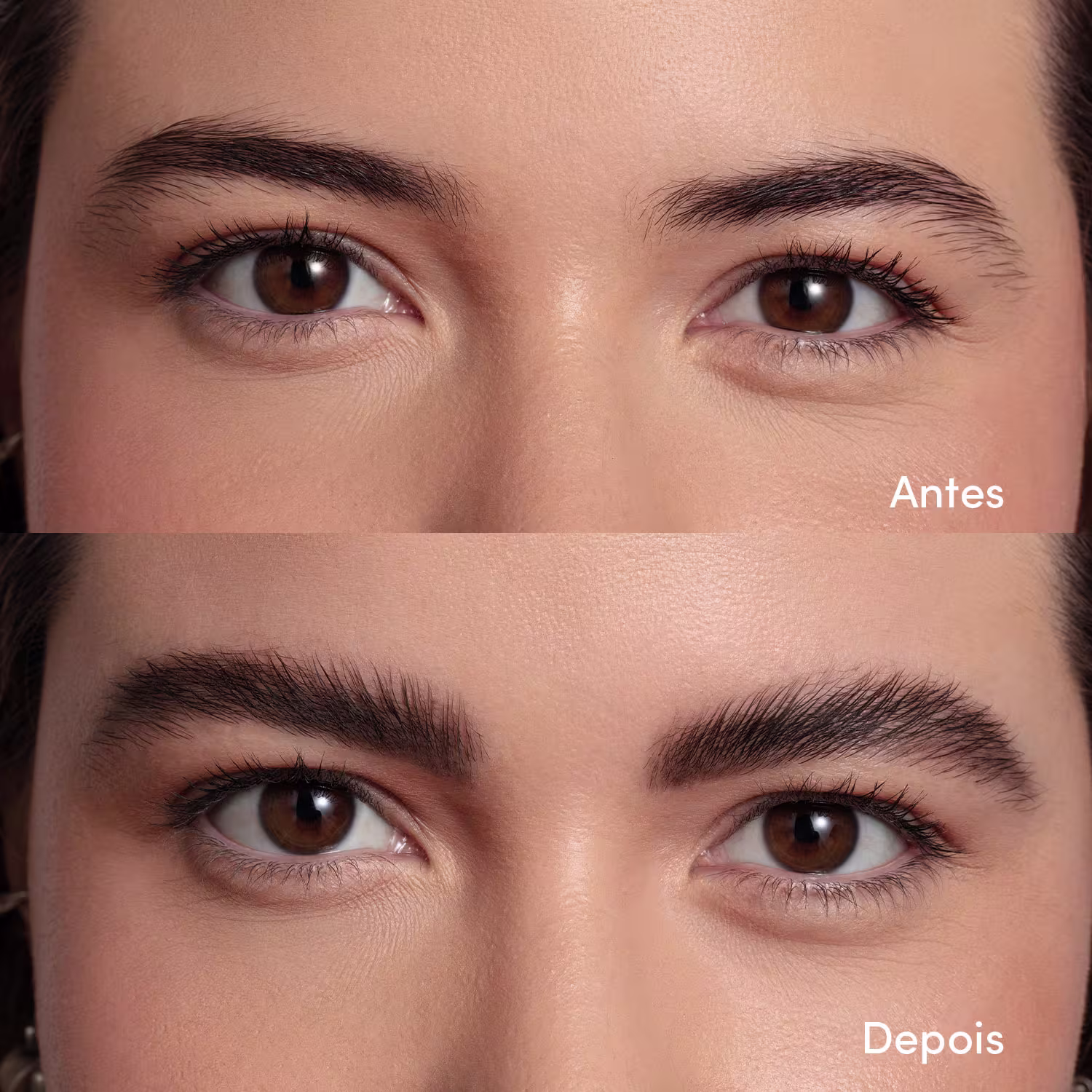 Multifuncional, esse item também possui até 12h de duração com alta fixação, preenchendo seus fios de maneira natural sem borrar.