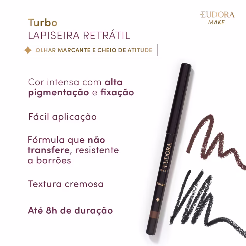 A Lapiseira Retrátil para Olhos Eudora Make em cor marrom garante um olhar marcante e cheio de atitude!