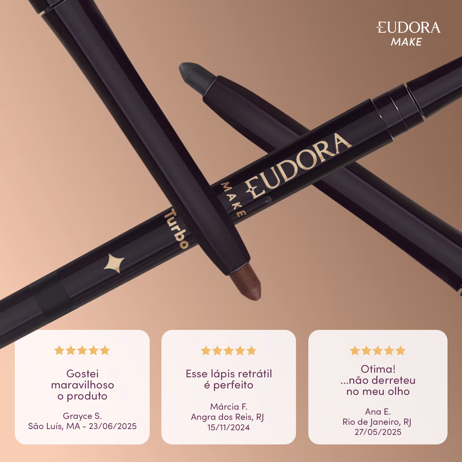 A Lapiseira Retrátil para Olhos Eudora Make permite criar traços precisos e uniformes, podendo ser aplicada tanto na linha d'água quanto como delineador.
