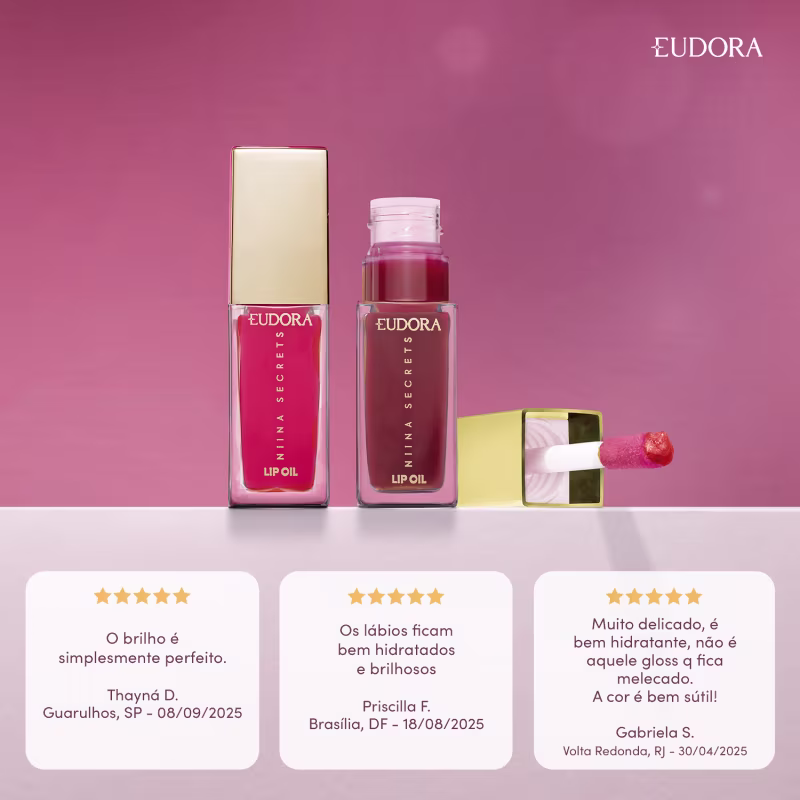 Contar meu relato. Comprei achando ser só um gloss mesmo (N sou atualizada disso de lip oil, lançamentos e afins). Ele é tão gostosinho, q comecei usar o dia todo e retocando, e meus labios sempre foram ressecados e rachados. 1sem após usar td dia minha boca perfeitaaaa, macia como eu nunca havia visto, eu achando estranho não sabia o motivo, depois q percebi q era ELE, o lip oil q estava deixando meus lábios assim. MARAVILHOSO, NUNCA MAIS QUERO FICAR SEM. Comprem.