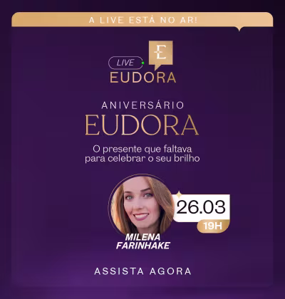 Na Live Eudora, além de ficar por dentro de tudo que acontece no universo da moda, você também tem benefícios exclusivos! Ela acontece, pelo menos, 2 vezes ao mês e traz influenciadores e especialistas para tirar dúvidas e ensinar novas técnicas de make, cabelos, perfumaria e muito mais!