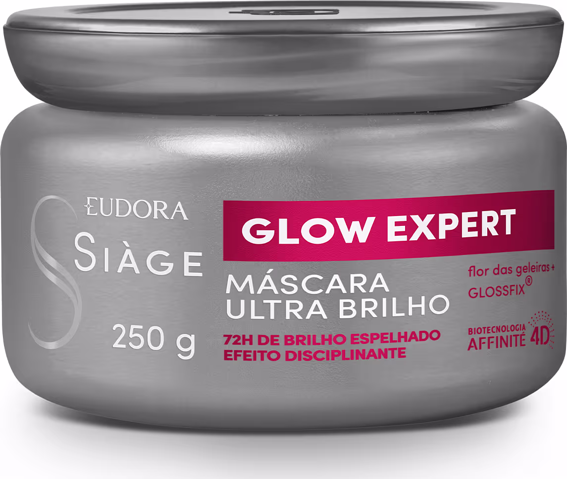 A linha Siàge Glow Expert dá um polimento aos fios, o que deixa os cabelos com um lindo brilho espelhado que dura muito. Inspirada nos Alpes Suíços, a fórmula contém Micropartículas de Flor de Geleiras, Glossfix® e a exclusiva Biotecnologia Affinité 4D, que juntos, deixam os cabelos macios, radiantes e livres dos fios arrepiados.
