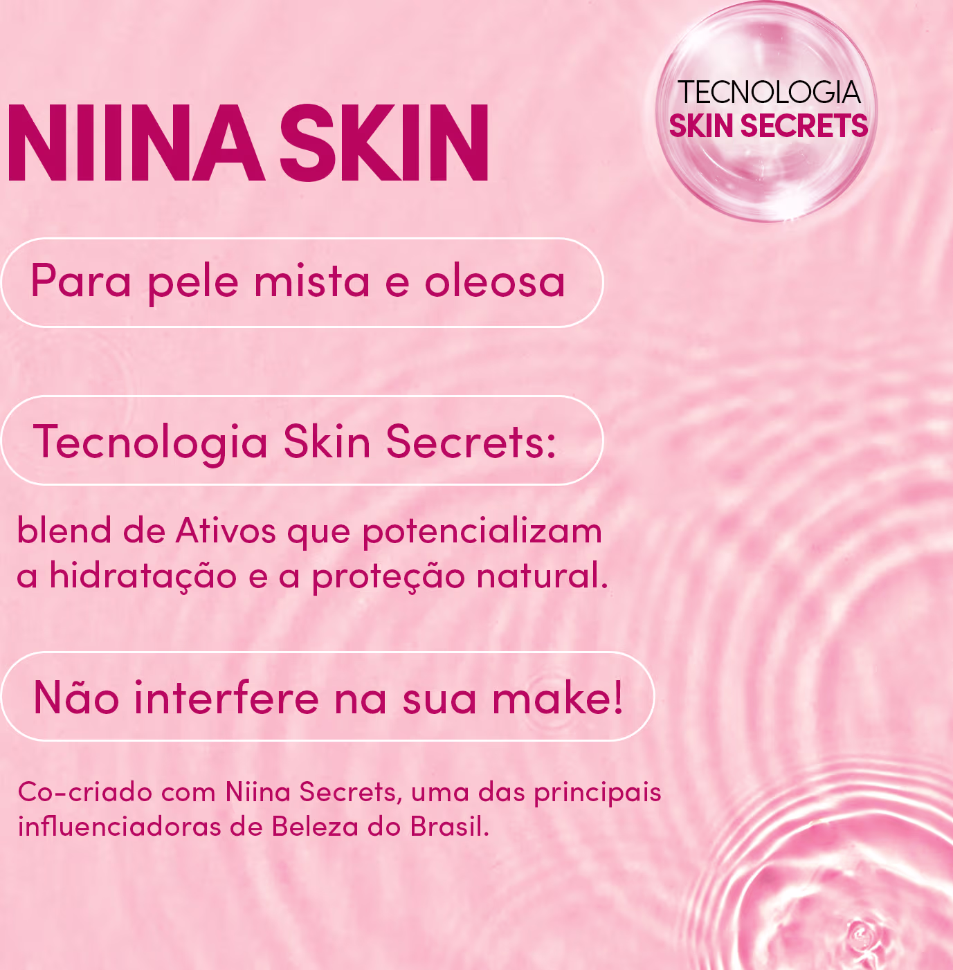 O segredo dos produtos de skincare Niina Skin foi revelado: sua tecnologia skin secrets traz um exclusivo blend de ativos dermatológicos que potencializam a hidratação e equilíbrio natural da barreira da pele: Niacinamida, a vitamina de Niina + Pentilenoglicol da Cana de Açúcar. Sua fórmula ultraconcentrada com rápida absorção fará você sentir a diferença na hidratação da pele rapidamente.