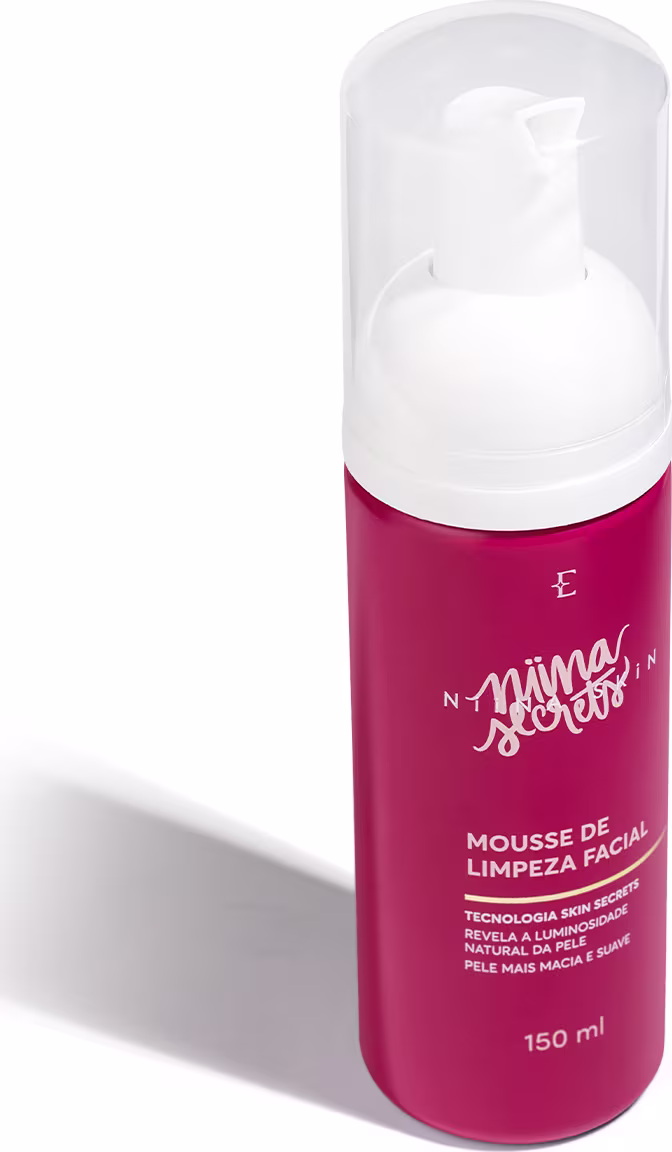 Ideal para a limpeza facial diária, o Mousse de Limpeza Niina Skin tem uma espuma rosa ultra cremosa que reduz o brilho excessivo e revela a luminosidade natural da pele.