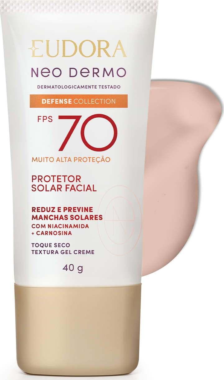 Procurando uma proteção solar com cor que acompanha seu ritmo e realça seu brilho único? O Protetor Solar Facial com Cor FPS 70 Eudora Neo Dermo Defense Collection é o seu novo aliado para uma pele protegida, visivelmente mais uniforme e radiante.