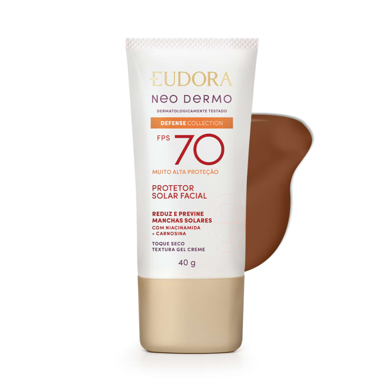 Procurando uma proteção solar com cor que acompanha seu ritmo e realça seu brilho único? O Protetor Solar Facial com Cor FPS 70 Eudora Neo Dermo Defense Collection é o seu novo aliado para uma pele protegida, visivelmente mais uniforme e radiante.