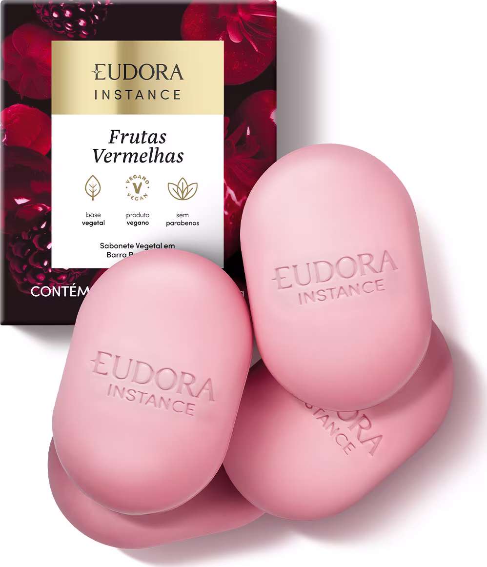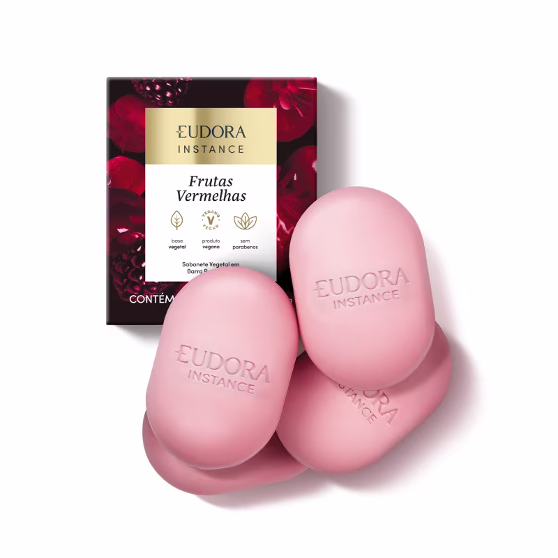 O Sabonete Vegetal em Barra Perfumado Instance Frutas Vermelhas traz mais higiene e perfumação para a sua rotina de banhos.