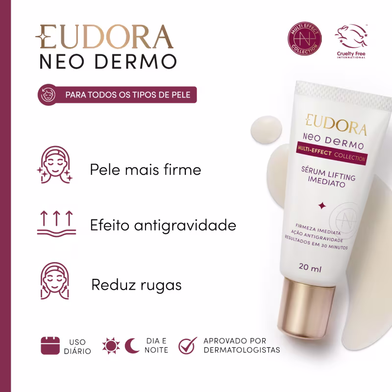 O Sérum Lifting Imediato Neo Dermo Multi-Effect Collection é o item de cuidados para a pele que vai fazer parte do seu ritual skincare com ativos biotecnológicos e resultados comprovados.