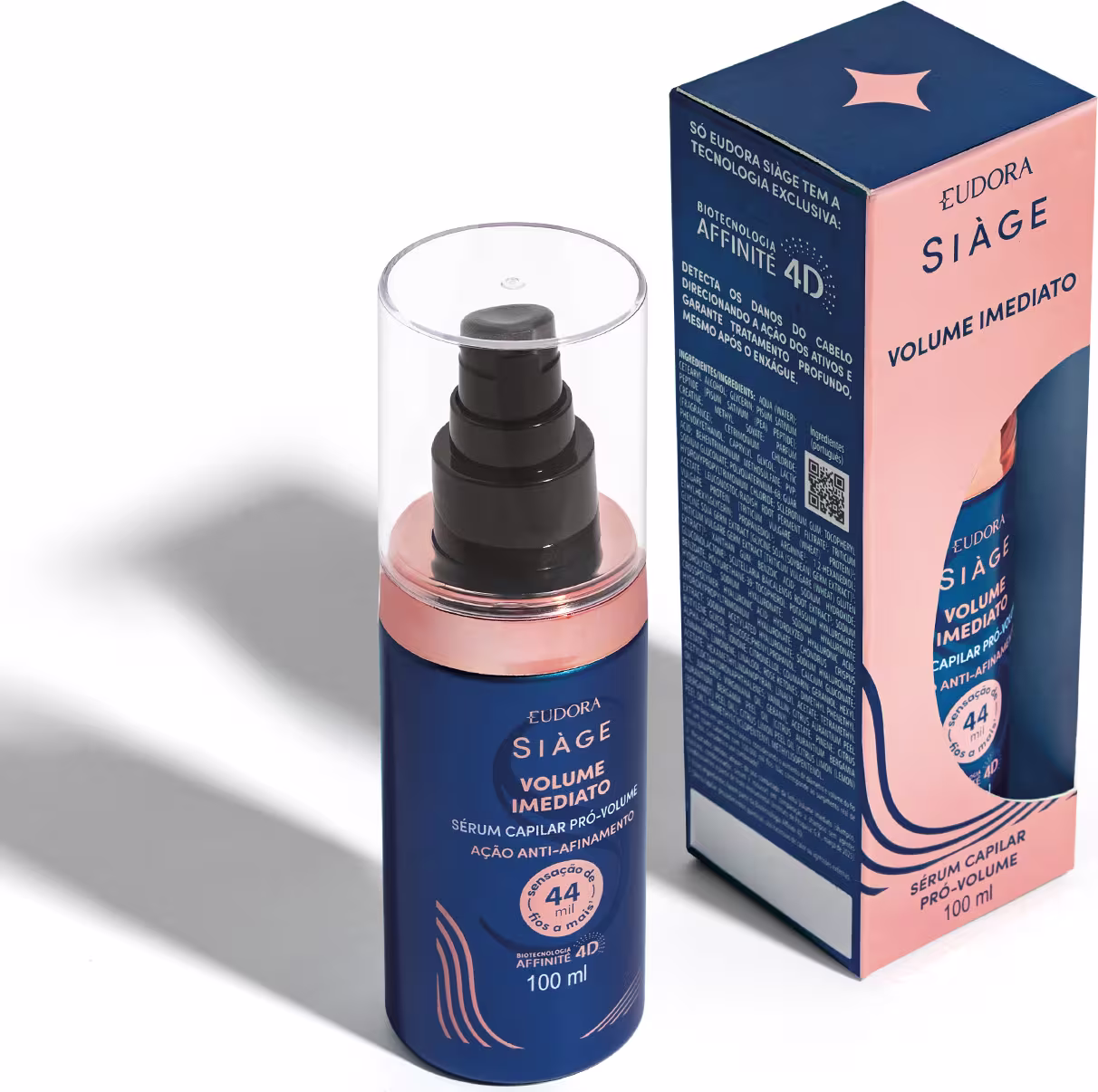 O Sérum Pró-Volume Siàge Volume Imediato é um tratamento profundo que entrega fios visivelmente mais cheios e com aspecto saudável da raiz às pontas. Projetado para quem busca uma solução imediata e anti-afinamento, traz sensação de 44 mil fios a mais no 1º uso¹.