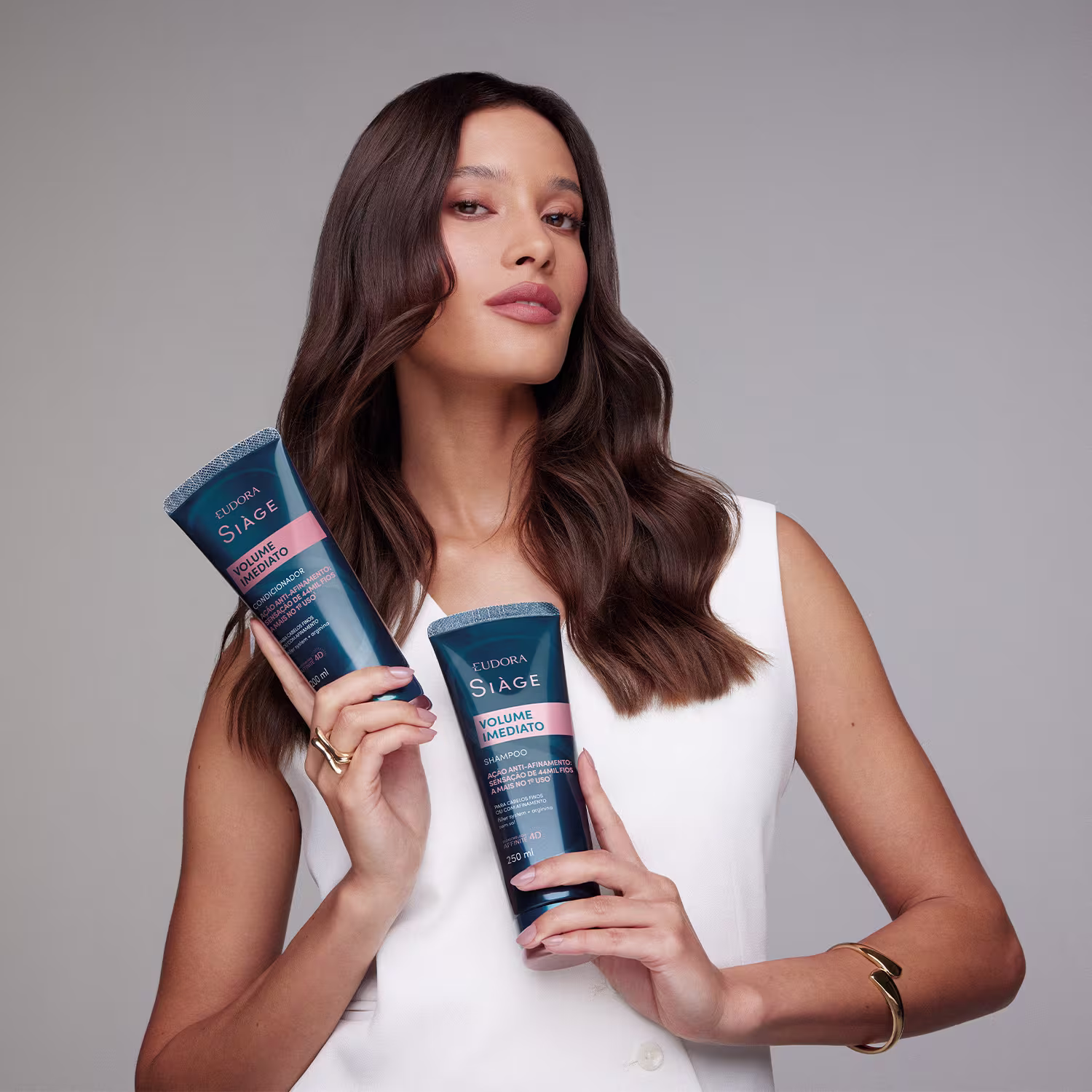 Shampoo Siàge Volume Imediato limpa sem ressecar, proporciona sensação de cabelos volumosos e mais cheios sem pesar. Ver mais ❯