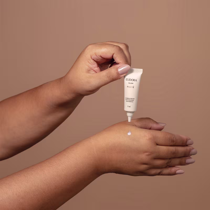 Sombra & Primer Multifuncional Holográfico Glam Paetê conta com uma fórmula com efeito ultrabrilho com ótima cobertura que não borra e nem acumula nos vincos ao longo do dia, entregando multifuncionalidade e alta fixação.